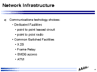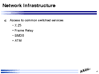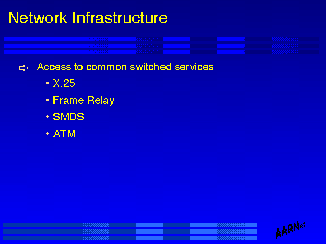 At this stage ATM is perhaps removable from this list, in so far as it does not form an integral part of many network service infrastructure technologies today, and its inclusion here is as much as expression of some form of faith that ATM will be a technology of choice in future high speed infrastructure services.