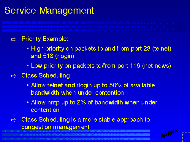 - Use of router facilities to define service levels
